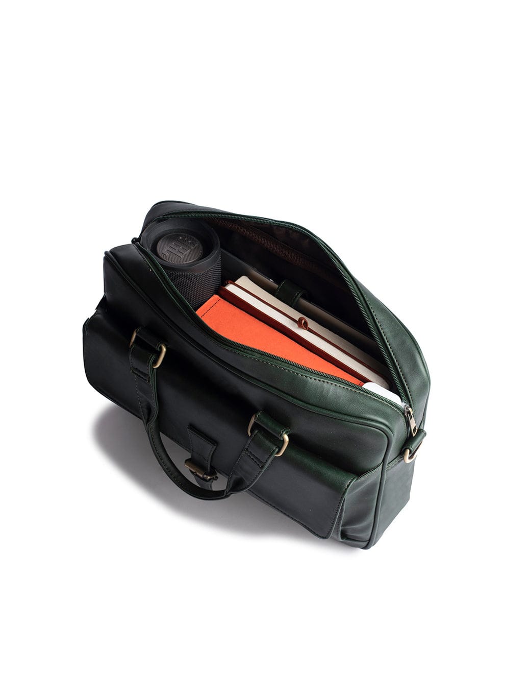 Army Green Genuine 16" Leather Laptop Bag with Detachable Strap