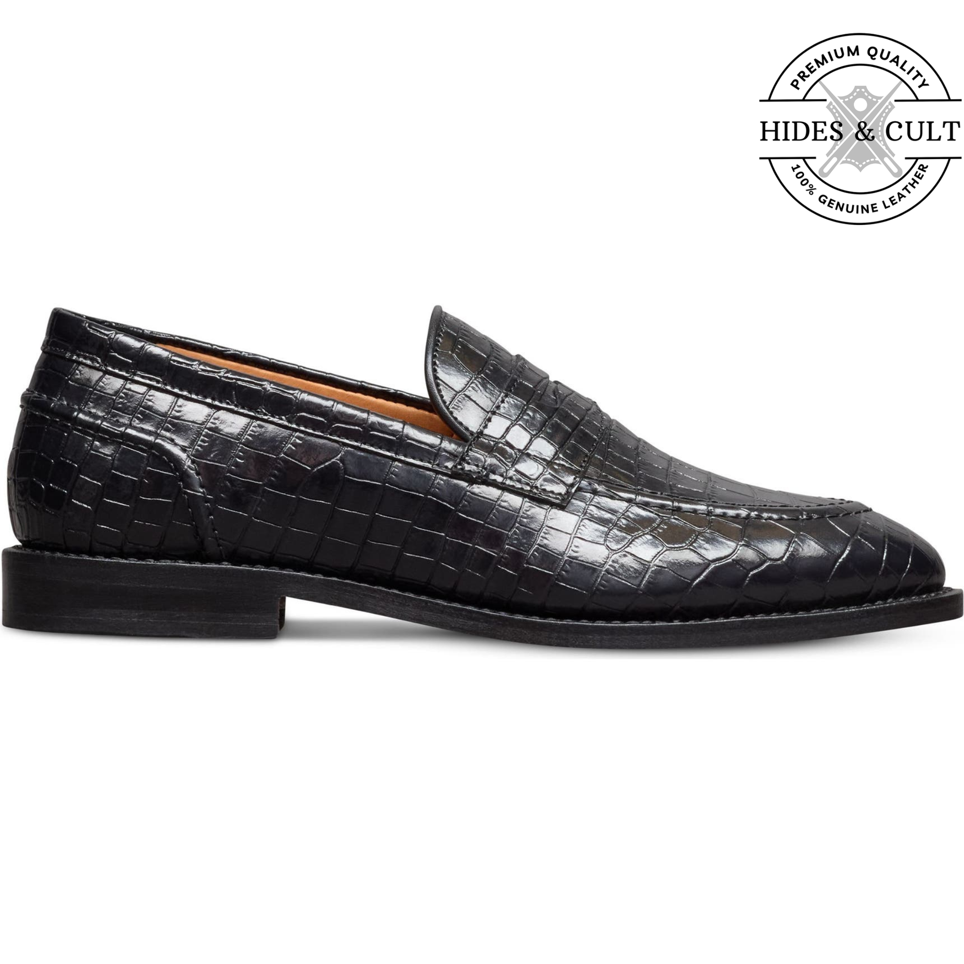 El Classico Black Croc Leather Moccasin | Hides&Cult