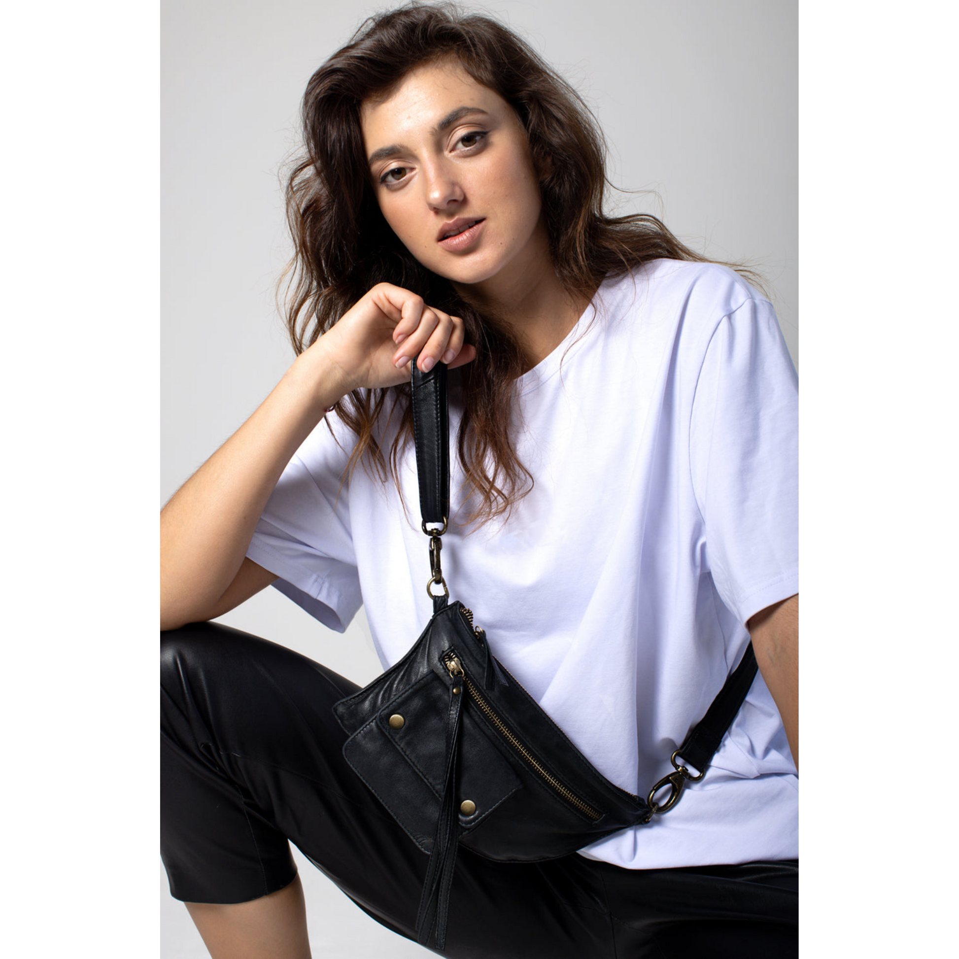 A cutting-edgy mini Crossbody Phone Wallet crafted out of sumptuous black calf leather. An ideal option for evening outings, festivals and your everyday adventures.