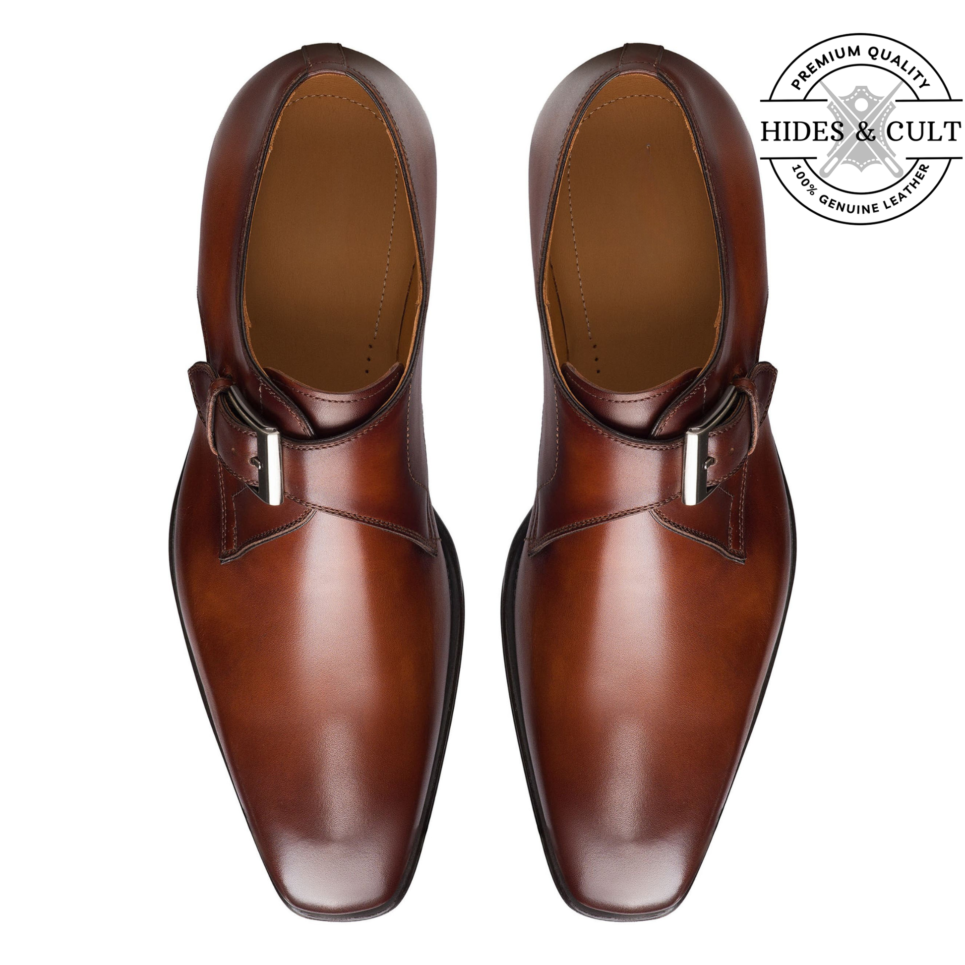 Brown Classic Single Monk Strap Leather Shoes | Hides&Cult