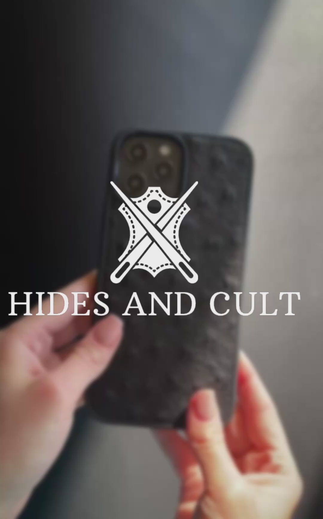 Luxury Black Ostrich Print Shockproof Genuine Leather Iphone Case