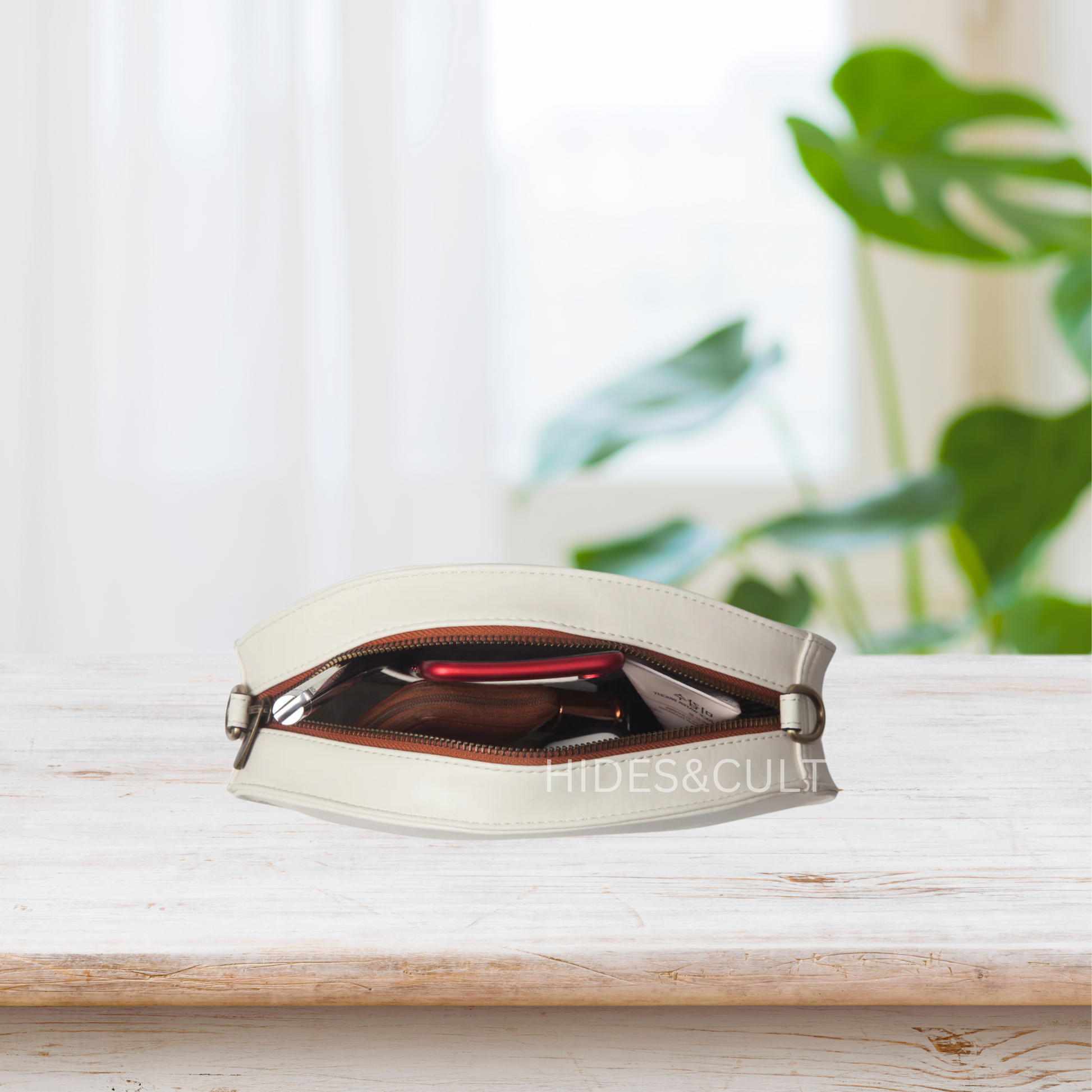 - Interior Pockets: Two small pockets inside (one open, one zipped).