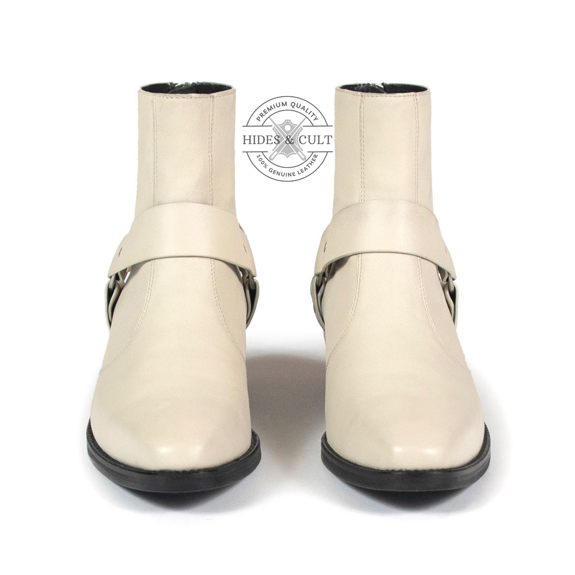 Off White Genuine Leather Harness Chelsea Boots Cuban Heel Men | HidesandCult